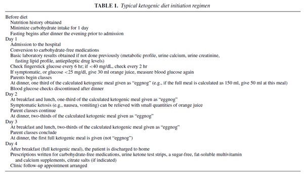 Below is a typical ketogenic diet initiation regiment used in a hospital setting.