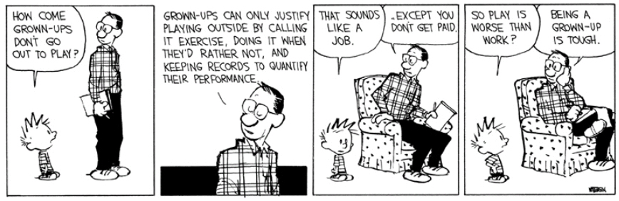 But as I am reading through scientific articles, all about the relationship between exercise and various health parameters, I am suddenly struck by the meaninglessness of it all. Exercise is healthy in so many ways, but it really should not be something we partake in to improve our cholesterol levels. It is not something we should do to prevent osteoporosis or fatty liver and it is not something to do to hopefully feel or look good in 10 years’ time. Exercise should be about having a good time here and now, and any extra beneficial effects should be considered bonuses.