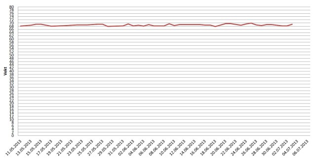 Grafen under viser min kroppsvekt i løpet av omtrent 2 måneder. Som du ser varierer vekten min mye.