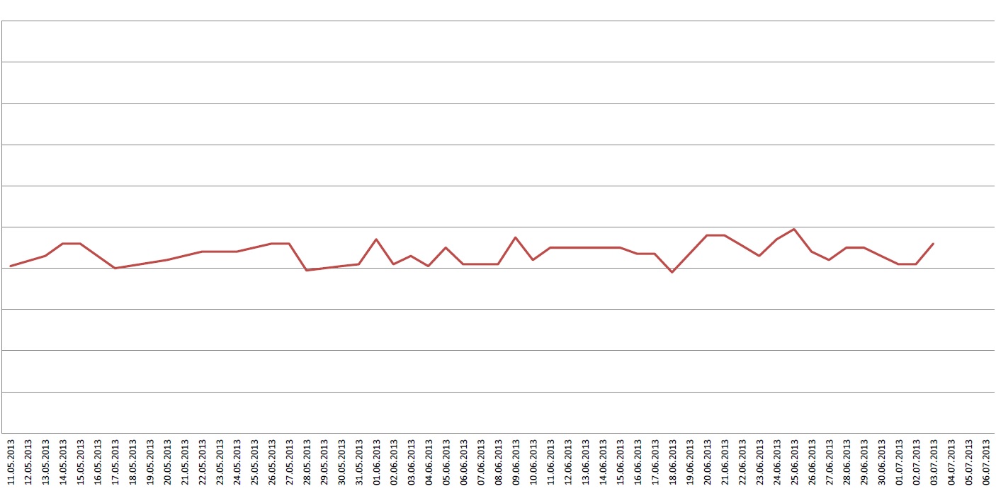 Grafen under viser min kroppsvekt i løpet av omtrent 2 måneder. Som du ser varierer vekten min mye.